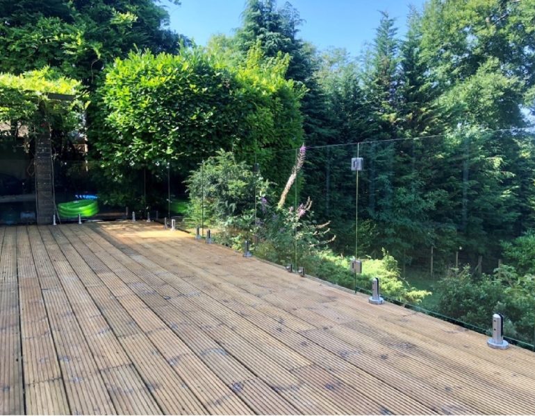 Furthermore, glass balustrades around decking are easy to install and maintain, as part of the outside space and garden.